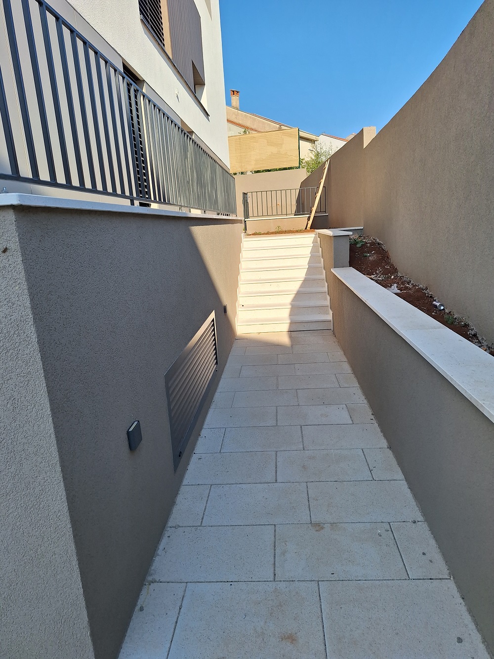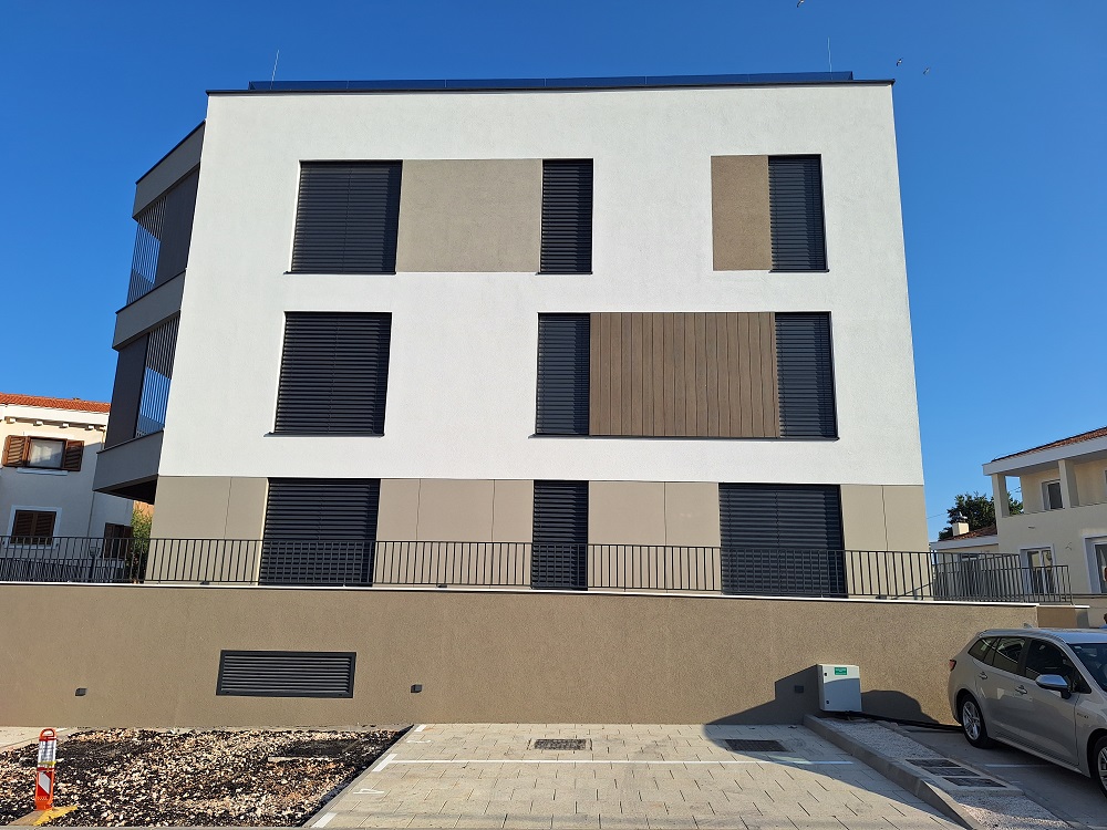 Katnost Po+P+2K s 24 parkirna mjesta (12 podzemnih, 12 vanjskih), ETICS fasadom (14 cm) i ventiliranom fasadom, DAIKIN 3-u-1 dizalicom topline za grijanje, hlađenje i toplu vodu, te podnim grijanjem i hlađenjem.