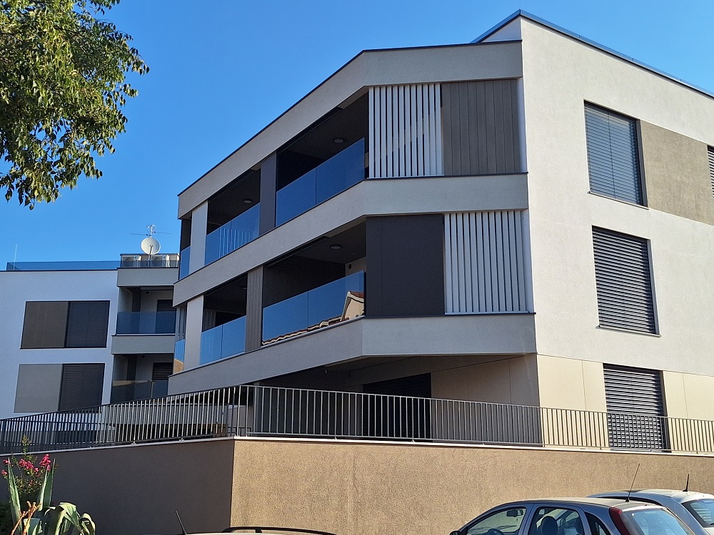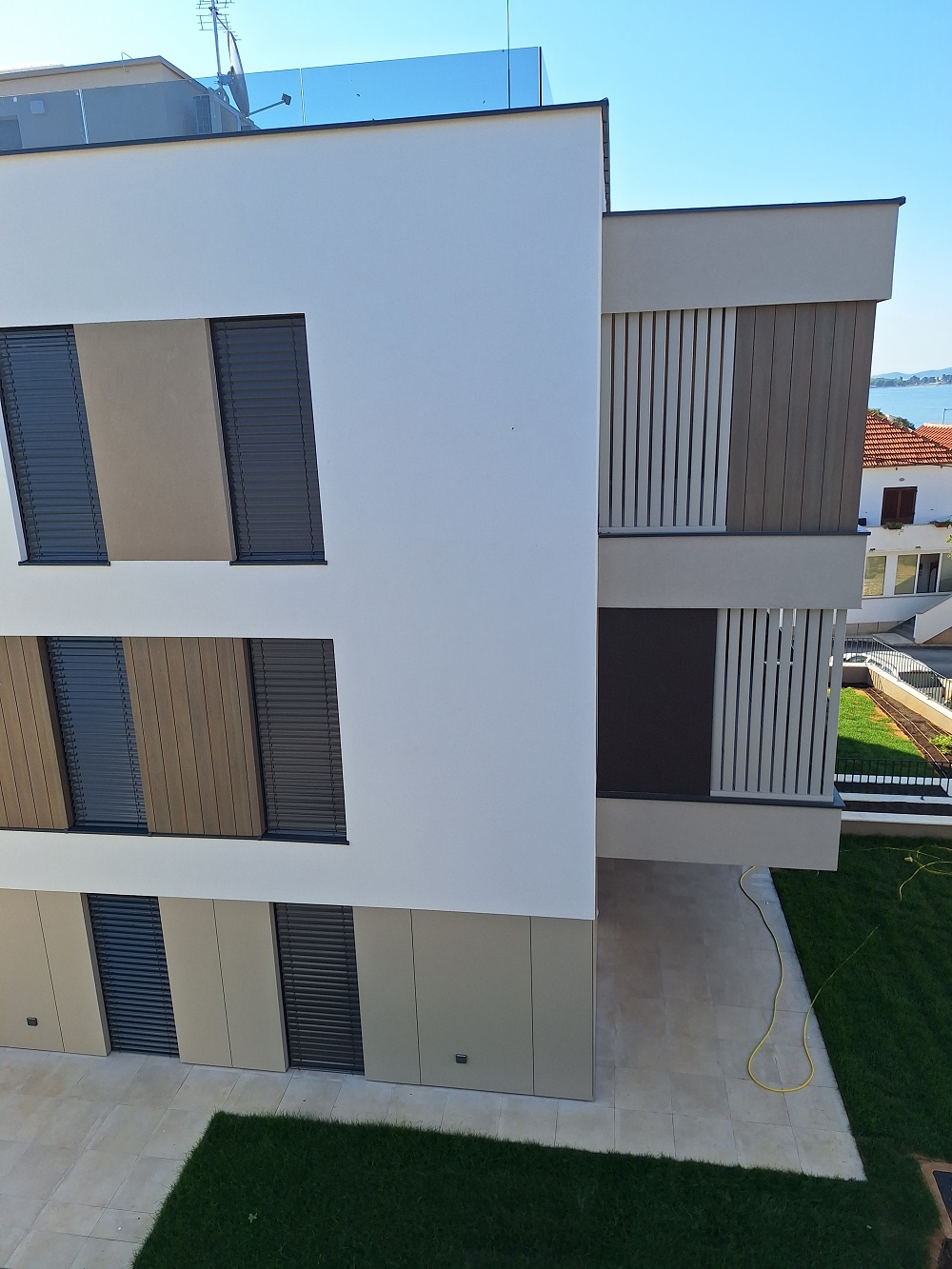 Katnost Po+P+2K s 24 parkirna mjesta (12 podzemnih, 12 vanjskih), ETICS fasadom (14 cm) i ventiliranom fasadom, DAIKIN 3-u-1 dizalicom topline za grijanje, hlađenje i toplu vodu, te podnim grijanjem i hlađenjem.